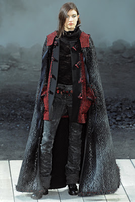 "The world is a dark place," acknowledged Karl Lagerfeld after the latest Chanel spectacle, which took place amid a fog-shrouded forest on a bed of still-smoldering scorched earth. There was some of the apocalyptic grandeur of German artists Caspar David Friedrich and Anselm Kiefer, and a bit more of the post-apocalyptic grit of Cormac McCarthy's The Road, but, as Lagerfeld himself noted, the models walked into and out of huge glowing squares of white light at each end of the catwalk. And isn't going into the light usually the way out of the dark place? At least it was in Poltergeist.